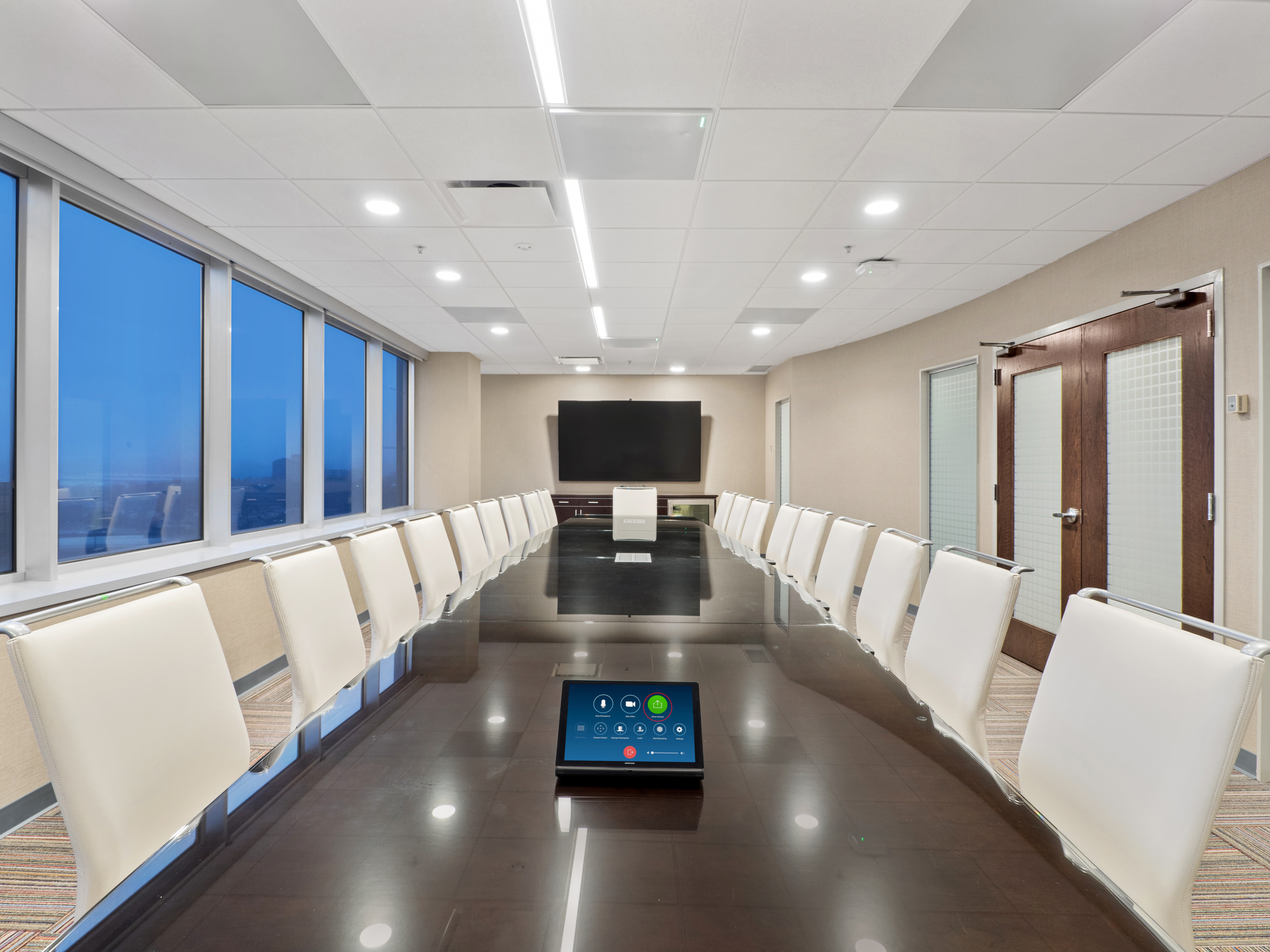 Dual-screen executive Zoom room in premier building