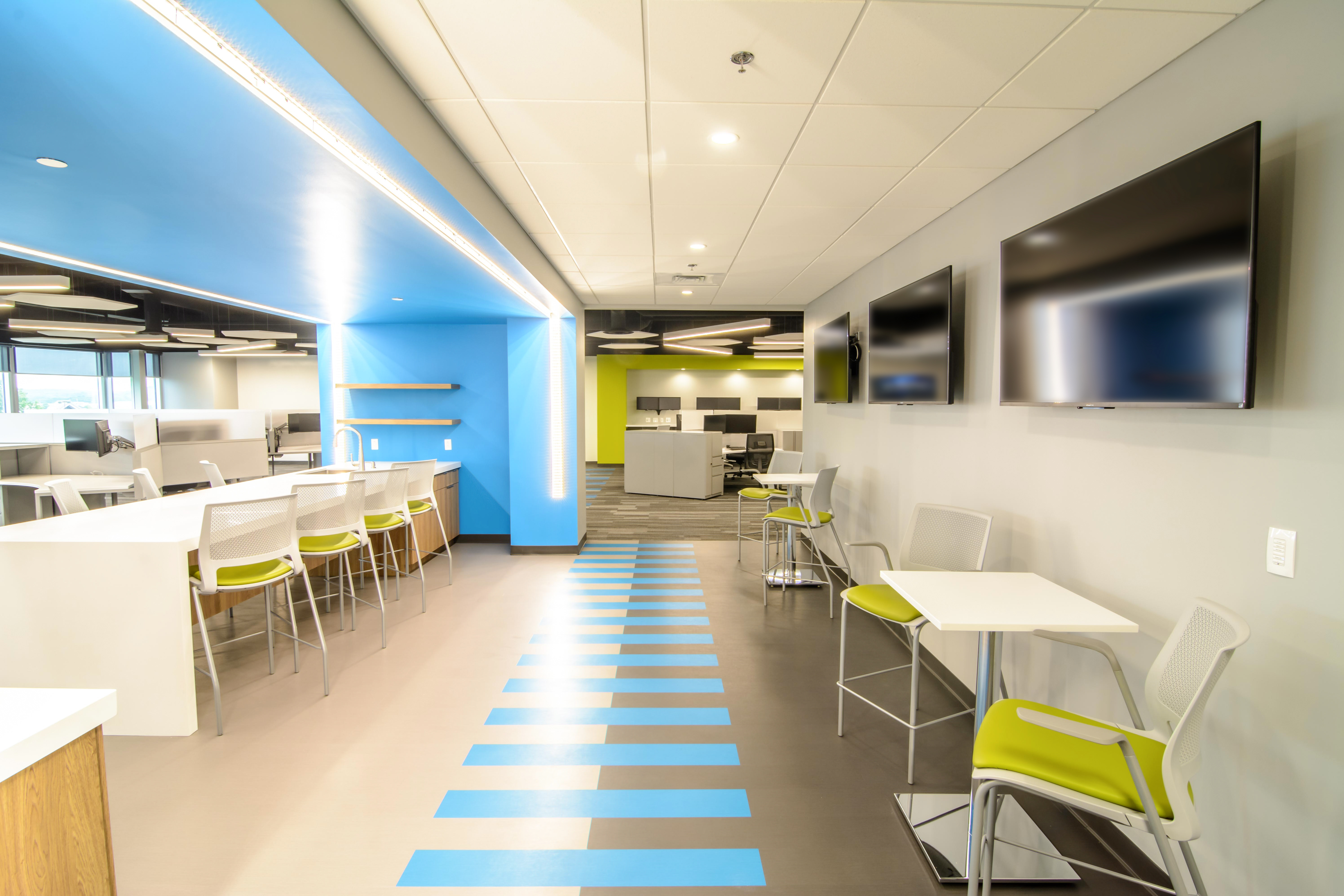 One of our corporate clients approached us to provide TVs and monitors for a large, open-concept workspace. The large room contained several distinct and separate areas, including tech services, an IT collaboration space, and a break area for employees.