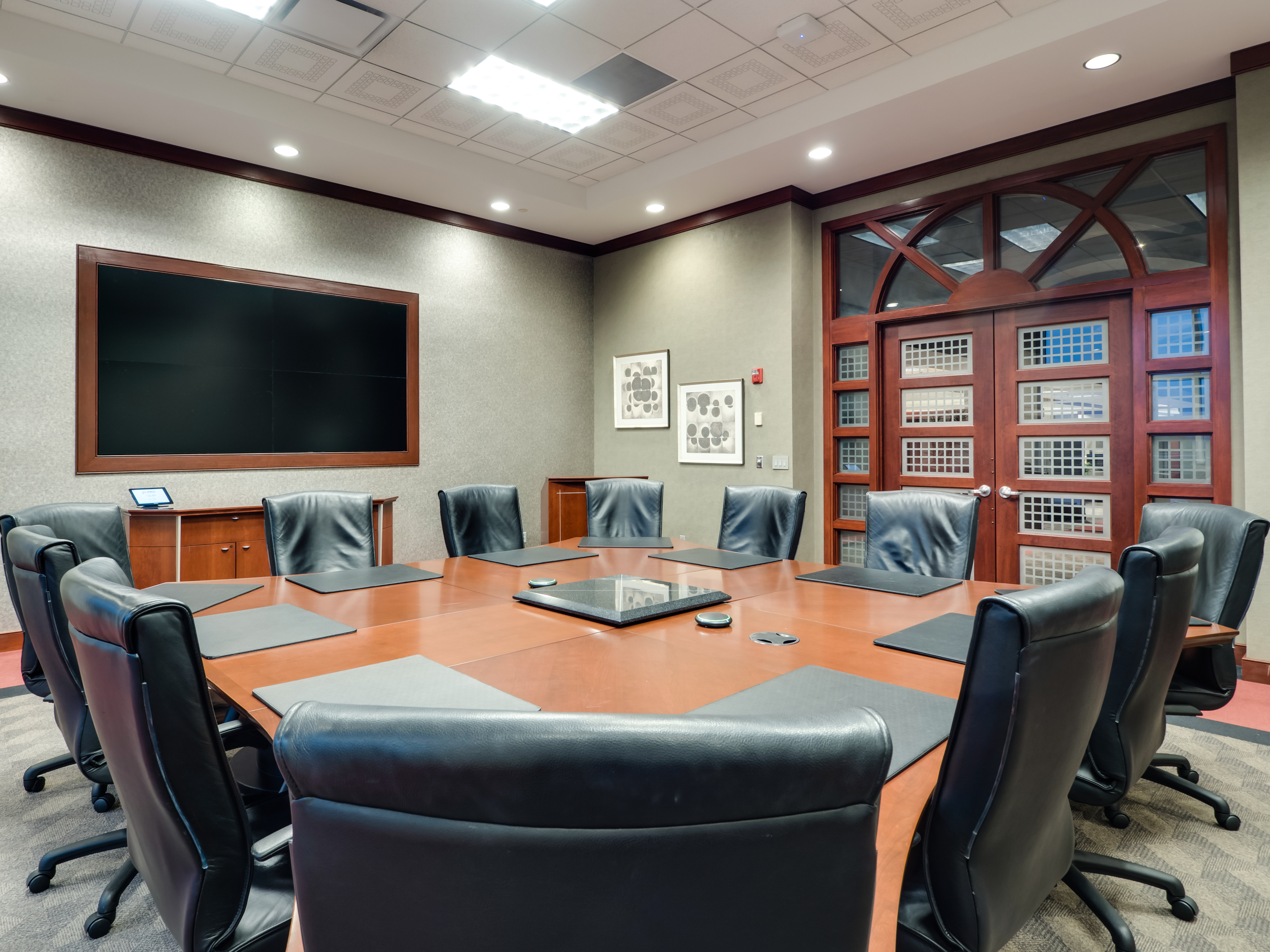 Corporate collaboration boardroom with enterprise video conferencing